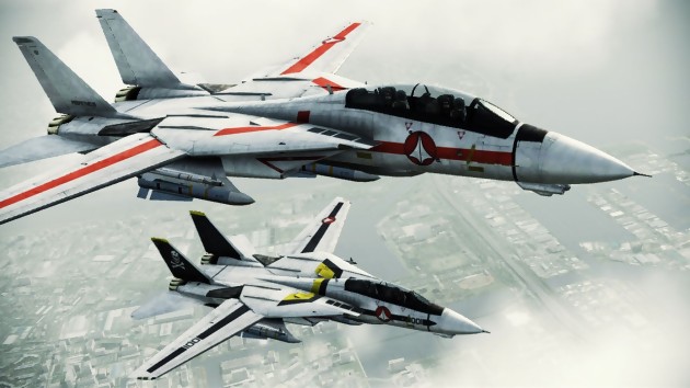 Pour tous ceux qui jouent encore à Ace Combat : Assault Horizon et qui ont un compte PSN/Xbox Live japonais, donc pas beaucoup de monde, Bandai Namco propose dès aujourd'hui des skins aux couleurs des jets de Macross afin de fêter les 30 ans d'existence de la série. Vous aurez donc l'opportunité de piloter un VF-1J Valkyrie ou un VF-1JS Valkyrie reprenant le modèle de base du F-14D, mais également et ça n'a rien à voir, tout un ensemble d'avions griffés Idolmaster, disponibles également en ce moment sur les deux plates-formes de téléchargement. Les deux modèles Macross vous reviendront tout de même à 400 Points Microsoft / 600 yens (un peu plus de 5€). Un anniversaire qui se monnaye. Voici les images.