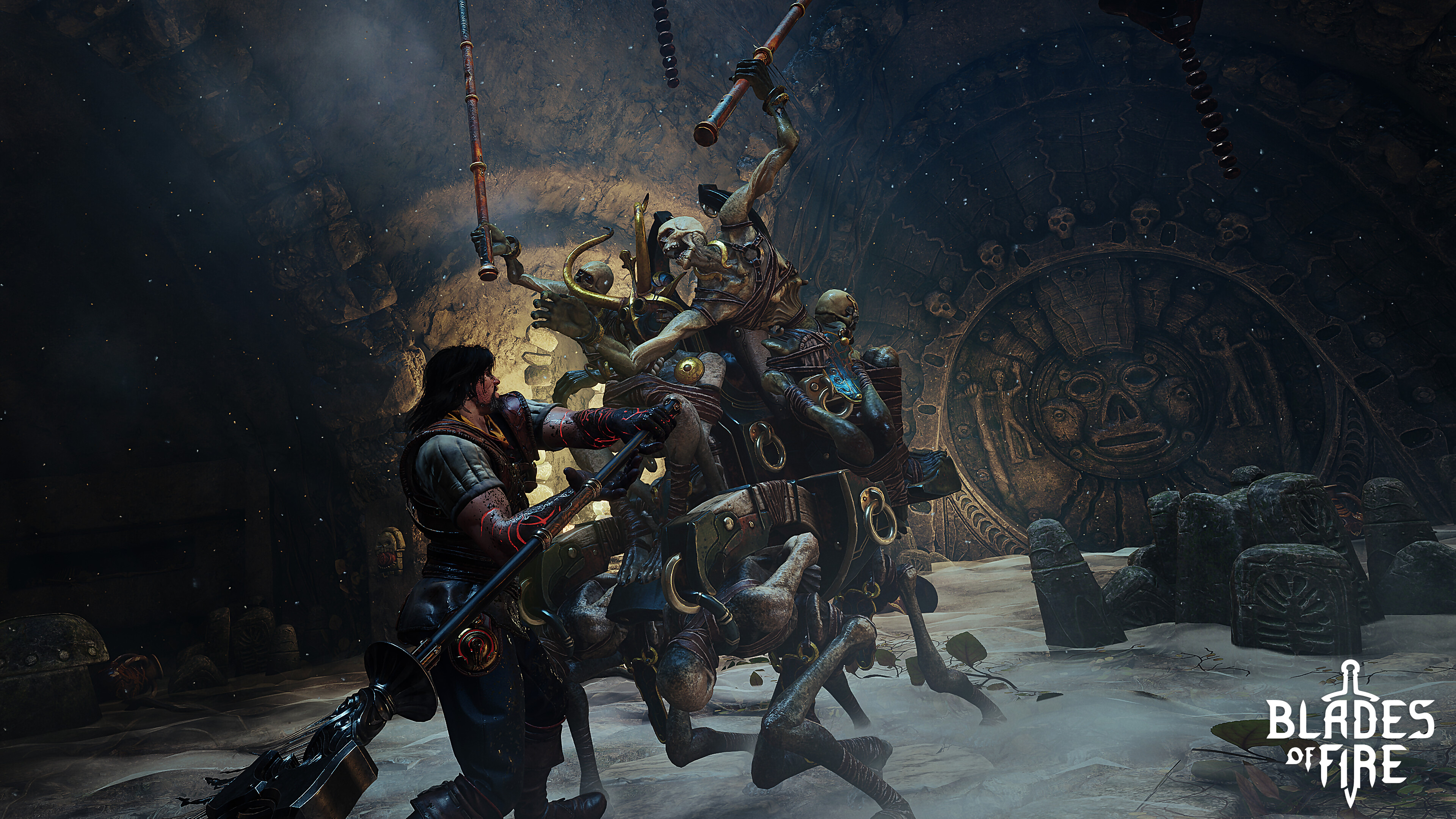 L'histoire nous parlera de la reine Nerea, nouvellement couronnée, qui a lancé un sort qui transforme l'acier en pierre et seule son armée d'abominations manie le métal divin contre lequel d'autres lames se brisent. Blades of Fire intègrera une notion de forge, avec un système pour fabriquer et crafter ses armes à partir de matériaux précis, qui affecteront le poids, la longueur, la durabilité, la pénétration et même la qualité du tranchant. Il y aura pas moins de 7 familles d'armes différentes et plus de 30 parchemins de forge uniques, qui permettent des combinaisons d'armes presque infinies. Il est aussi annoncé plus de 50 types d'ennemis, dont les gardes de la reine, des créatures, des morts-vivants et plus encore. Chaque ennemi a son propre style d'attaque, son arme et sa configuration d'armure.