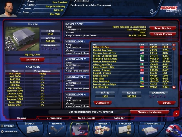 Initialement Boxing Manager était prévu pour le mois de novembre, hélas les aléas des plannings n’ont pas permis à DTP de sortir en temps et en heure leur soft. En attendant une nouvelle date, les développeurs de Proline Software nous donne des nouvelles de leur jeu de management à mi-chemin entre jeu de boxe et gestion. Comme pour le foot, le rugby, le cyclisme ou le hand-ball, vous devrez gérer les finances de vos athlètes que vous aurez créés au préalable. Entraînement, équipements et staff, rien n’est laissé au hasard dans ce jeu tout en 3D.