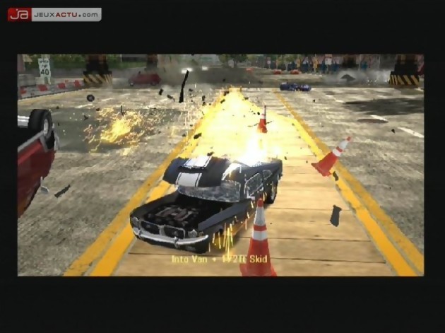 Alex : « Nous avons sérieusement amélioré ce mode et nous l’avons enrichi avec des rampes, des bonus et des explosions ! Justement, il y a un bonus qui s’appelle le Crash Breaker qui s’apparente à une bombe à retardement. Quand le décompte se termine, la voiture explose et provoque une réaction en chaîne. Il y a énormément de moyens d’augmenter son score, et il ne faut surtout pas zapper la séquence d’intro qui vous montre où se trouvent les bonus et quel est le meilleur chemin à prendre. Enfin, nous avons incorporé un mode deux joueurs pour le Crash Mode, où il sera possible soit de coopérer pour provoquer le meilleur crash possible, soit de jouer l’un contre l’autre. »
