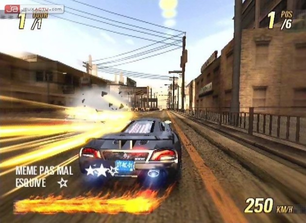 C'est dans un mois pile poil que le quatrième épisode de la série Burnout verra le jour sur Xbox et PS2. En attendant ce jour béni, Electronic Arts nous a fait parvenir la démo jouable du jeu dans sa version PS2. Un peu chiche avec un circuit unique et une seule voiture disponible, cette démo nous permet néanmoins d'avoir un premier avis sur ce nouvel épisode. Alors qu'on pensait que Criterion avait atteint les limites du genre avec Burnout 3 : Takedown, le studio de développement anglais nous prouve qu'il a encore une pléiade d'idées dans leurs tiroirs. Non content d'afficher une vitesse d'animation encore plus ébouriffante (et oui !), Burnout Revenge pousse le système de takedowns encore plus loin ! Désormais, il est possible de percuter les véhicules de petite taille pour les envoyer s'écraser sur ses concurrents. Les multiples embranchements permettent parfois de retomber sur le capot de ses concurrents, provoquant de cette manière ce qu'on appelle un Vertical Takedown. En cas d'accident et si votre jauge de Burnout vous le permet, il sera possible de faire exploser sa voiture grâce au crashbreaker (comme dans l'ancien mode Crash de Burnout 3 : Takedown) pour balayer toutes les voitures qui oseront passer près de vous. Bref, Criterion nous prouve encore ses talents d'artificiers en la matière et Burnout Revenge est prêt à détrôner son prédécesseur. Waouh !