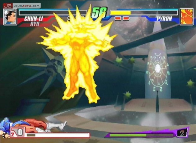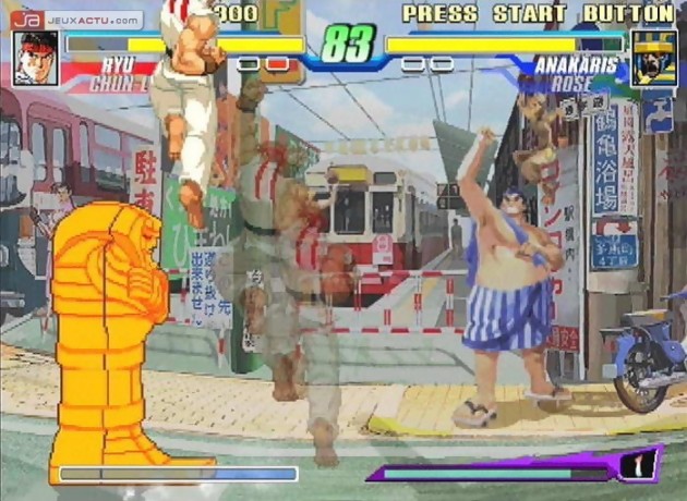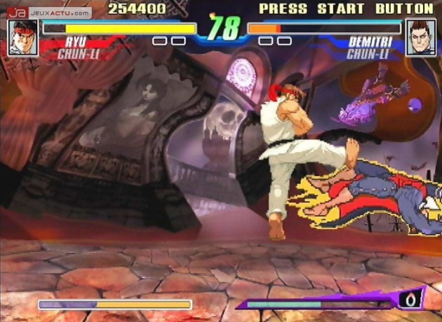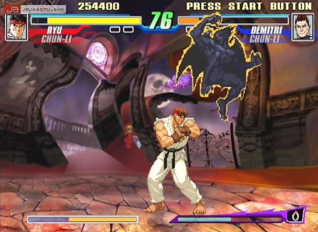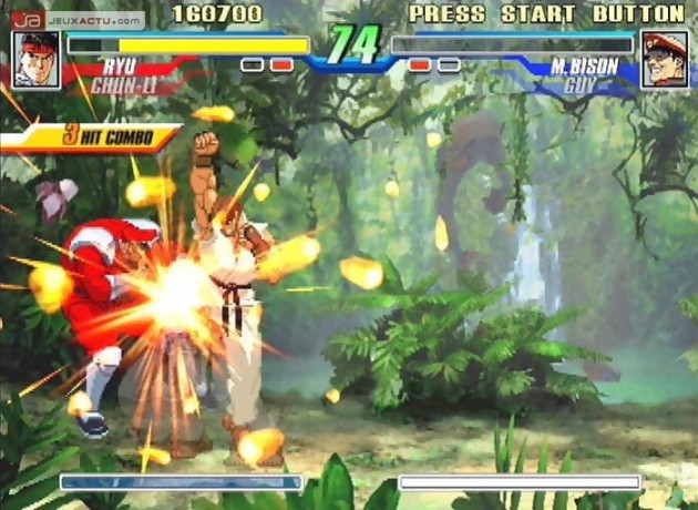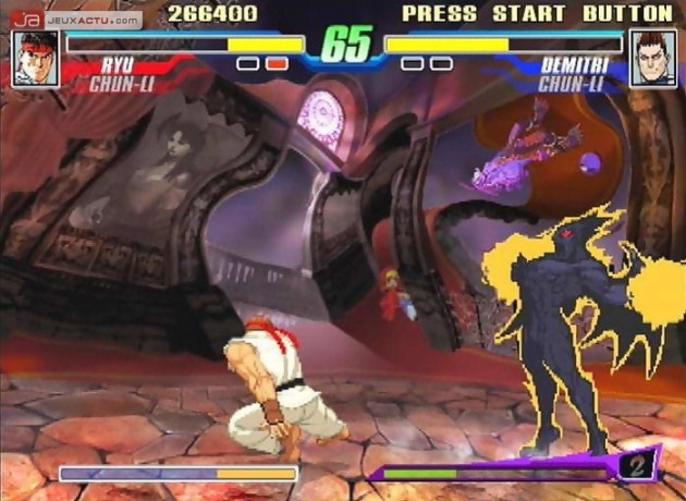 Capcom Fighting Jam en japonais ou Capcom Fighting Evolution pour l'appellation américaine, tel sont les noms attribués au nouveau jeu de baston 2D signé Capcom. Ce cross-over permet de retrouver quelques uns des personnages issus de l'univers de la firme japonaise tel que Street Fighter II, Street Fighter III, Street Fighter Alpha (ça fait beaucoup de Street), Darkstalkers et Red Earth. Chaque jeu correspond à un style de combat différent et il faudra s'adapter pour profiter pleinement de toutes les attaques disponibles. En attendant notre test, voici une galerie d'images maison de la version PS2.