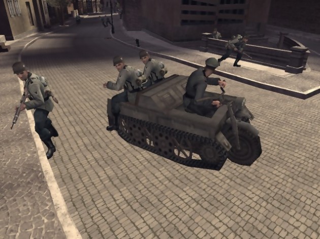 Activision met les bouchées doubles en vue de la sortie de Call of Duty : Le Jour de Gloire. Il ne se passe pas une journée sans qu’on ait droit à nos nouvelles images. Donc après le mode solo et les modes mulitjoueurs, l’éditeur rend hommage aux véhicules disponibles dans le jeu. Half-track, Kettenkrads et Panzers, ils sont tous au rendez-vous et posent pour l’occasion dans les villes assiégées. Call of Duty : Le Jour de Gloire débarquera d’ici 3 jours sur Playstation 2. Les versions Gamecube et Xbox seront disponibles dès demain.