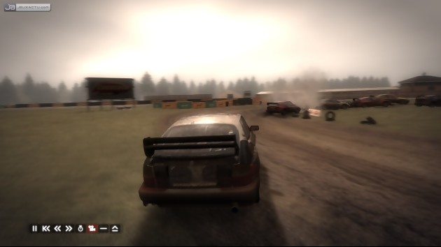 Si Colin McRae : DIRT mise sur le réalisme graphique, la conduite en revanche se montre plus fantaisiste. A mi-chemin entre simulation et arcade, avec un net penchant pour l’arcade, le pilotage se révèle être quasi instantané, ce qui est sans nul doute un point positif pour réunir un plus large public. Néanmoins, il va falloir quand même appuyer sur la pédale de frein et par moments utiliser le frein à main pour éviter de retrouver sa tête fossilisée dans le pare-brise. Si les dégâts d’une voiture apparents permettent d’intensifier l’aspect visuel d’un jeu, ils ont avant tout un rôle déterminant sur la conduite, et une voiture trop endommagée ne pourra pas terminer sa course et sera forcée à l’abandon. A ce sujet, il est possible de connaître en temps réel l’état de sa voiture grâce à l’allumage de petits voyants ou en accédant au menu des options. Pas franchement pratique, je vous l’accorde. Mais ce n’est pas ce fluet détail qui viendra gâcher les bonnes sensations que procure ce Colin McRae : DIRT, bien décidé à imposer son style face à une concurrence de plus en plus féroce. Pour pouvoir se mesurer aux mastodontes du genre, de nombreux modes de jeu sont prévus pour prolonger le plaisir, avec un mode "Carrière" en forme de pyramide et un mode online qui augurent du meilleur. Rien que ça ! Bref, il ne reste plus qu'à gommer les défauts techniques présents dans cette version avancée (clipping, bugs de collision, frame-rate pas toujours au top) et on devrait être en face d'un jeu de courses prometteur. La sortie de Colin McRae : DIRT est prévue pour le