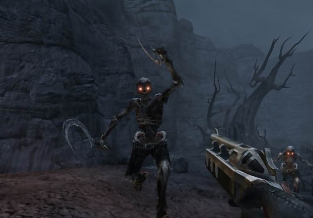 Sammy, on les connait pour avoir développé View Point sur Neo Geo en 1992. On les connait aussi pour leur superbe série des Guilty Gear et ses graphismes 2D en haute résolution mais aussi pour leur mauvais Spy Fiction. Toujours autant ambitieuse, la société japonaise va se lancer dans un créneau inédit pour elle : le First Person Shooter, autrement dit le FPS avec Darkwatch. Pour tenter de s'imposer dans le genre, Sammy ne fait pas dans la dentelle et se paye le luxe d'utiliser la fameuse technologie Havok qui permet une gestion des objets et des corps ultra réaliste. A mi-chemin entre le western et le film de zombies façon George A. Romero. Le soft nous proposera d'endosser le rôle de Jericho Cross, contraint de pourchasser le vampire qu'il l'a sauvagement mordu afin de sauver son âme de la damnation. Histoire de varier le gameplay, Darkwatch proposera des phases à bord de differents engins mais également à cheval comme en témoignent les images suivantes. La mise en boîte du jeu est prévue en Europe pour le premier trimestre 2005 sur Xbox et PS2.