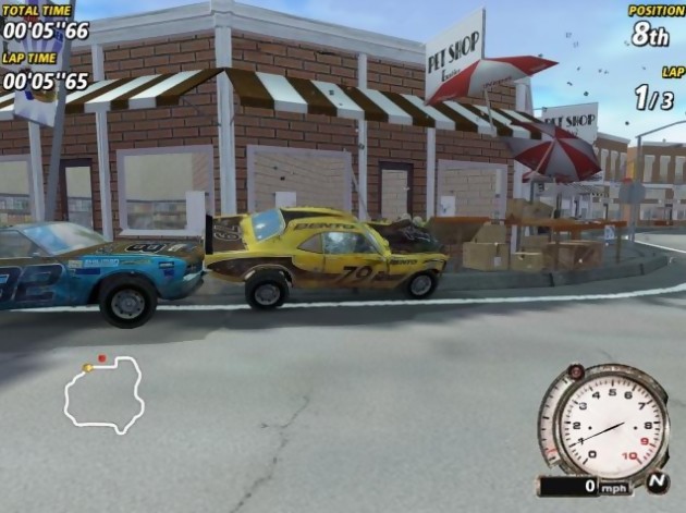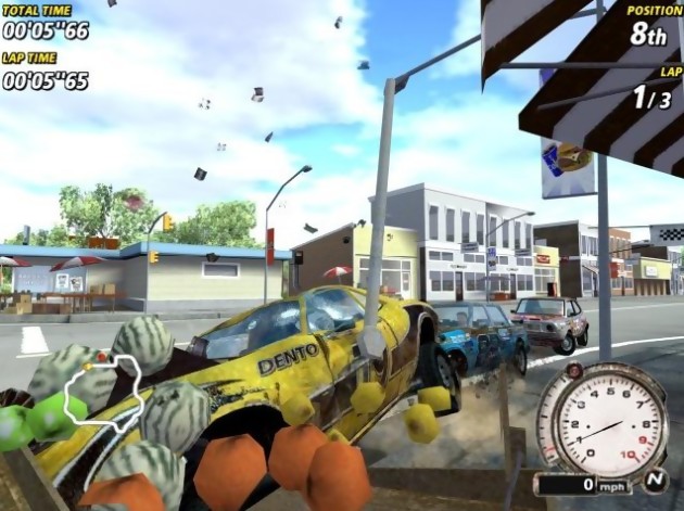Alors que la rédaction de JeuxActu a déjà pu faire quelques tours de pistes sur FlatOut, voici les premières images du niveau citadin du jeu de course de voitures de Bugbear.