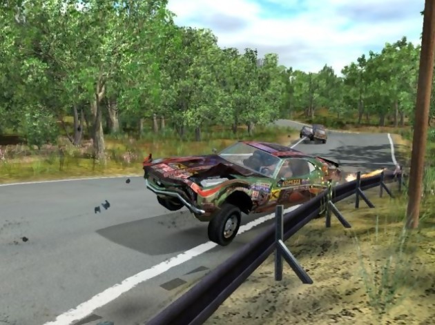 La grande particularité de FlatOut est que tout, ou presque, est destructible dans ce jeu : non seulement les voitures mais également tout ce qui se trouve sur la piste. Pour avoir essayé de nombreux types d’accidents, on peut vous affirmer que les voitures ont tendance à finir en piteux état et que les projections de pilote en dehors du cockpit sont monnaie courante. On vous en parlera bientôt plus en détail dans une preview de ce jeu prévu pour le mois de septembre sur PS2, Xbox et PC.