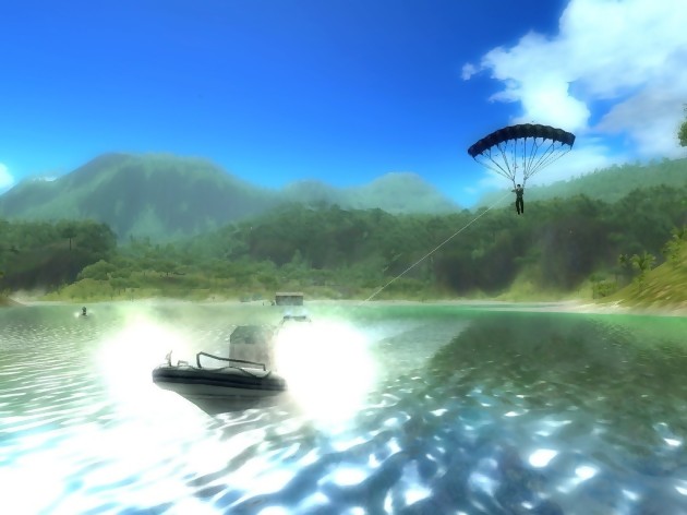 Le moins que l’on puisse dire au sujet de Just Cause, c’est que la démo présentée sur Pc et Xbox 360 par Eidos Interactive divise les foules. Certains sont émerveillés par les nombreuses possibilités de jeux et la grandeur de la zone de jeu, et d’autres critiquent ouvertement l’animation rigide des personnages ou l’I.A. basique des ennemis. Mais tous sont d’accord sur un point : Avalanche Studios nous propose un moteur graphique impressionnant sur terre comme dans les airs. Pour vous rendre compte de la qualité graphique de Just Cause, Eidos nous refile une petite salve d’images Xbox 360 dont la sortie est fixée au 22 septembre 2006 en même temps que les autres moutures en développement.
