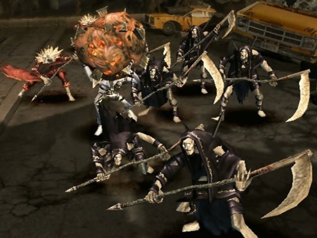 Lorsque Dante sort de sa douche les cheveux encore humides et qu’il n’a pas fini de déguster sa pizza certainement refroidie, mieux vaut ne pas le déranger. Les sbires envoyés par Arkham l’ont compris à leurs dépens. En effet, malgré toute leur volonté et les nombreux coups assénés au corps de Dante, avec des faux plantées au plus profond de sa chair, ils n’arrivaient à aucun moment à le perturber, celui-ci étant insensible à la douleur. Quelques minutes suffiront à notre jeune éphèbe pour se débarrasser de la racaille ambiante et terminer son encas en toute tranquillité. Cette première cinématique réalisée avec le moteur 3D du jeu, nous a permis d'avoir un bref aperçu des nouvelles prouesses physiques du héros de Devil May Cry 3 et de sa facilité à manier les armes aussi bien à feu que blanches. Salto arrière dans les airs, dash, arts martiaux, surfer sur le corps de ses ennemis, tous ces mouvements s’enchaînent avec une brutalité encore plus démonstrative qu’auparavant et une arrogance affirmée. Voilà à peu près comment nous est présenté le Dante nouveau.