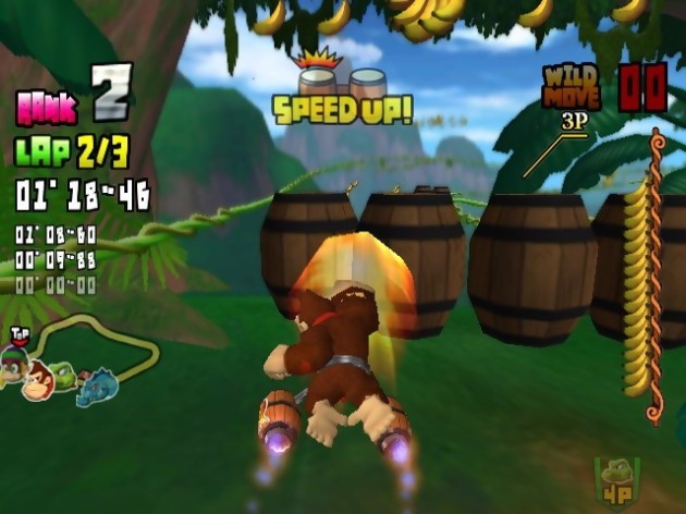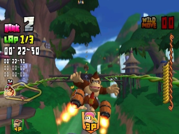 Avec Super Paper Mario, DK Bongo Blast fait partie des derniers titres qui maintiennent le GameCube encore en vie. Annoncé à l'E3 dernier dans le silence le plus total - puisqu'absent du stand Nintendo mais également de la conférence pré-E3 du constructeur - le titre revient nous donner de ses nouvelles au travers une salve d'images toutes fraîches. Il s'agira d'un jeu de courses un peu particulier puisqu'il faudra faire appel aux bongos pour diriger notre primate à travers différents tracés ponctués de pièges et autres obstacles. Toutefois, le titre sera également jouable via une manette classique pour ceux qui auraient du mal à taper dans leurs mains. La sortie de Donkey Kong : Bongo Blast est prévue pour la fin de l'année.