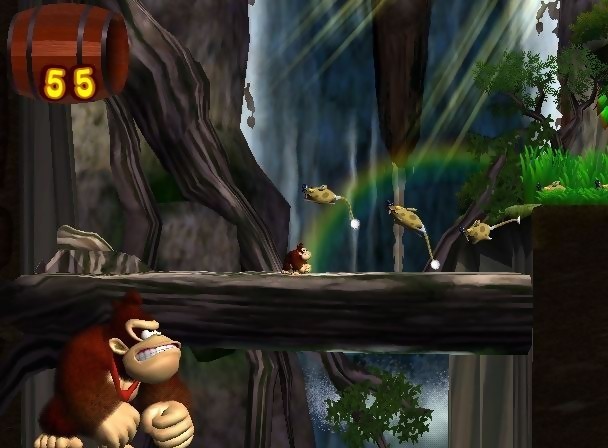 Si, comme notre SCSK, surnommé l’homme aux trois bras, vous tapez jour et nuit sur vos bongas et maîtrisez parfaitement Donkey Konga, un nouveau défi vous attend l’année prochaine. En effet, Donkey Kong Jungle Beat va vous permettre d’utiliser vos instruments à percussion favoris pour contrôler le plus célèbre gorille du jeu vidéo. En voici de nouvelles images, histoire de vous donner le la de cette ode au bonga.