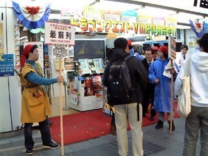 Au Japon, la sortie d'un nouvel épisode de Dragon Quest est un toujours un événement de taille. Dragon Quest VIII ne déroge pas à cette règle puisque depuis sa commercialisation samedi dernier (le 27 novembre), Square-Enix annonce avoir fourni pas moins de trois millions de copies aux différentes boutiques du pays et autres sites de vente en l'espace de quelques jours. Le prix élevé de 9240 yens (soit environ 68€) ne changera pas les habitudes des joueurs nippons et c'est dans le calme et l'ordre que ces derniers ont commencé à faire la queue devant les boutiques de Akihabara, la Mecque des jeux vidéo à Tokyo. Si l'on croit le correspondant japonais de GameSpot, certains magasins accueillaient avant leur ouverture près de 300 personnes devant leur enseigne, comme en témoignent les photos qui suivent. Un événement on vous dit !