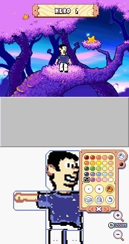 Drawn to Life est un jeu qui ne manque pas d’ambition puisqu’il est le seul actuellement sur DS à vous offrir la possibilité de créer vous-même le héros de votre choix en passant par une interface dédiée à cette création. Pas question de choisir parmi une liste prédéfinie de physiques, de visages ou de coiffures. Vous dessinerez de la tête aux pieds votre avatar pour un résultat unique et attachant. Pour le reste, Drawn to Life se présentera comme un jeu de plate-forme / aventure traditionnel mignon et bourré d’humour.