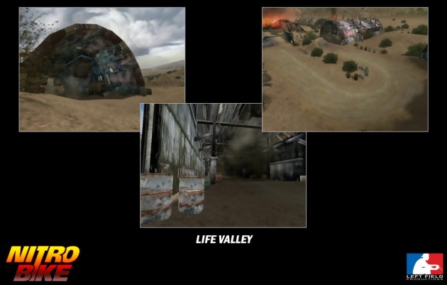 Après les courses de 4x4 et le street racing, Ubisoft se tourne vers une autre discipline : le motocross. Les développeurs d’Excitebike 64, Left Field Productions, dévoilent aujourd’hui les premières images de Nitrobike, un soft exclusif à la Wii. Le jeu proposera courses endiablées et cascades spectaculaires en solo comme en multijoueurs. D’ailleurs, Nitrobike sera même compatible online ! Voici donc les screenshots du jeu qui fait assez peine à voir pour sa première sortie. Mais tout ceci a le temps s’améliorer d’ici la sortie de Nitrobike en fin d’année.