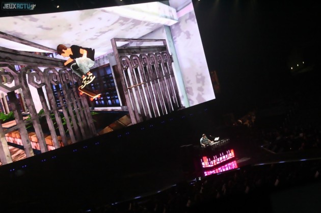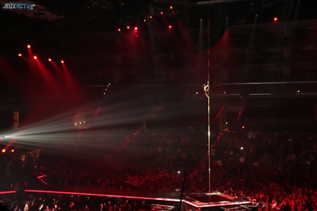 Si Activision n'aura pas de stand à proprement parler sur le showfloor de l'E3 cette année, l'éditeur américain a quand même tenu à créer l'événement en organisant une soirée pour le moins mémorable au Staples Center de Los Angeles, durant laquelle une multitude de célébrités sont montées tour à tour sur scène pour faire lever la foule. David Guetta, N.E.R.D (avec Pharrell Williams), Tony Hawk, Deadmau5, Jane's Addiction, Eminem, Usher, DJ Z-Trip ou bien encore Rihanna, tous ont assuré le spectacle parmi les trailers subrepticement glissés par Activision. Car l'un des objectifs de la soirée était quand même de parler des jeux que le groupe prévoit de sortir cette année (DJ Hero 2, Guitar Hero : Warriors of Rock, True Crime : Hong Kong, Tony Hawk : Shred entre autres), même de façon subliminale. En plus des artistes présents sur l'estrade, d'autres ont copieusement garni le tapis rouge situé de l'autre coté du Staples Center ; et il ne fallait pas arriver en retard pour avoir une chance de les apercevoir. On a ainsi pu reconnaître l'actrice australienne Abbie Cornish, Seth Green (Heroes, Austin Powers), Eric Balfour (24), Shwayze, Michael Trevino, Scott Porter (Speed Racer) ou encore Summer Glau. Avec un tel casting, la soirée s'est déroulée dans une ambiance de folie, avec notamment une contorsionniste qui s'est élevée plusieurs mètres au-dessus des têtes pour réaliser quelques acrobaties vertigineuses. Pour finir, on précisera qu'Activision a pensé à emmener dans ses valises quelques démos pour assurer la promotion de ses jeux, mais que celles-ci ne seront accessibles qu'à des journalistes triés sur le volet. En ce qui nous concerne, on vous rappelle qu'un certain nombre de previews sont déjà disponibles.