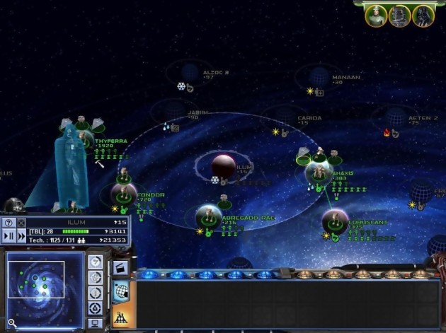 Disparu de la scène depuis août dernier, Star Wars : Empire at War est enfin de retour après plusieurs mois de silence. Activision, son éditeur, rattrape le retard en distillant pas moins de 76 screenshots inédits. Comme on peut le voir en parcourant cette galerie d'images, le but est de conquérir un maximum de planètes qui nous permettront par la suite de gagner des fonds financiers pour créer vos troupes. Les affrontements se feront aussi bien sur terre que dans l’espace et il faudra bien étudier le terrain avant de se lancer dans la bataille car l’ennemi n’est pas dupe. Le joueur a la liberté de choisir entre la Force et le côté obscur, en sachant que chaque camp est représenté respectivement par Obi-Wan Kenobi ou Dark Vador. Munis de leur sabre-laser, ces deux personnages ne sont autres que le point névralgique de tout stratège. Les éliminer vous assure une victoire quasi certaine. Méfiance tout de même car ces personages clefs possèdent une force de frappe incroyable et une résistance aux attaques à rude épreuve. La sortie de Star Wars : Empire at War est calée au 17 février prochain sur le Vieux Continent.