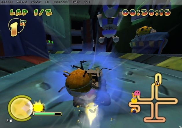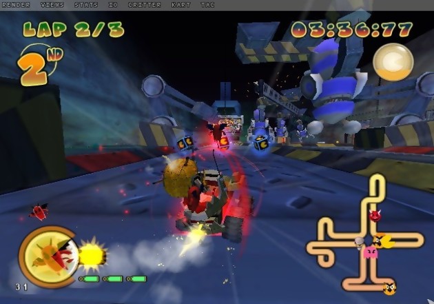 Pac-Man se lance aussi dans le rallye et plagie Mario Kart de bout en bout, le génie en moins...