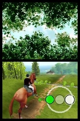 A mi-chemin entre jeu de gestion et d’aventure, Horse Life nous invite à suivre les pérégrinations d’un jeune cavalier, désireux de devenir champion équestre. Pour ce faire, il va falloir gravir les étapes une à une, et avant de pouvoir débuter la première saison des championnats, tout un travail de dressage avec son cheval est nécessaire. C’est là qu’interviennent les inspirations liées à Nintendogs. En effet, à l’instar du titre de Nintendo, le joueur disposera d’un lieu privilégié (le pré) dans lequel il pourra interagir avec son cheval. C’est bien évidemment le stylet qui sera l’ustensile indispensable pour se faire comprendre, mais on pourra également compter sur le microphone de la machine pour siffler son cheval, et ainsi l’ordonner de venir vers soi. Comme tous les animaux de compagnie, le cheval apprécie les caresses. Outre l’herbe qu’il broute régulièrement, il aime également qu’on le chouchoute avec quelques fruits ou autres friandises. Le nettoyage est également un élément à prendre en compte. Shampouiner et astiquer le box de son cheval s’avère être d'une grande importance, afin d'éviter de le mettre dans une situation de stress. Stress qui l'empêchera par la suite de briller dans les compétitions. C’est donc un moment qu’il ne faut absolument pas négliger, car nécessaire pour son bien-être. D’ailleurs, la jauge de bonheur permet de constater les humeurs de son cheval, et ainsi savoir s'il a besoin de plus d'attention, ou à l'inverse qu'on le laisse gambader dans son pré. Créer une synergie entre le joueur et ce cheval, voilà ce que Neko Entertainment va tenter de mettre en place dans Horse Life.