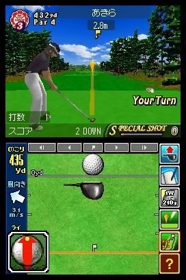 Voici une nouveau cheptel d'images pour Nintendo Touch Golf : Birdie Challenge, ce nouveau jeu de golf qui se jouera uniquement au stylet. Mais contrairement à Tiger Woods où il fallait frotter une barre de boost pour augmenter la puissance de frappe, Nintendo Touch Golf : Birdie Challenge nous demandera de dessiner plus ou moins précisément la trajectoire de la balle. Pas si simple quand on sait qu'il faudra prendre en compte la direction du vent ou bien encore les condictions climatiques. La sortie de Nintendo Touch Golf : Birdie Challenge est prévue pour le 18 novembre prochain.