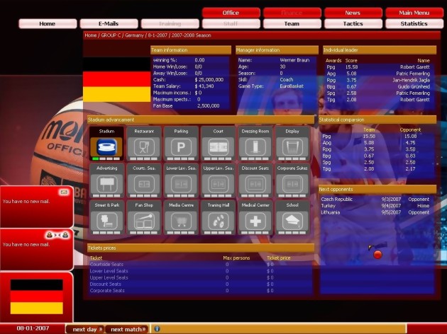 Même le championnat de la Fédération Internationale de Basketball Amateur, ou FIBA, aura droit à son jeu officiel à la rentrée. C’est XIDER Games qui s’y colle en collaboration avec les développeurs de Dartmoor Softworks. Le résultat sera un jeu de management avec tout un tas de techniques à paramétrer pour remporter les matchs et toutes les licences de la FIBA. Voici quelques screenshots en attendant la sortie qui devrait coïncider avec l’Eurobasket 2007 en Espagne.