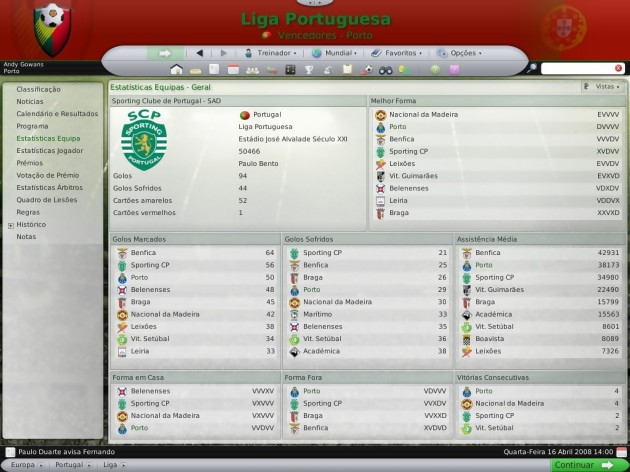 Après l’annonce de la version PSP de Football Manager 2008, Sega revient nous parler de l’opus PC attendu de pied ferme par tous les fans de management footballistique. Pour cette nouvelle série d’images, tous les joueurs d’Europe s’y retrouveront avec des screenshots en hollandais, en italien, en portugais ou en espagnol. Le titre sera disponible le 19 octobre prochain chez nous.