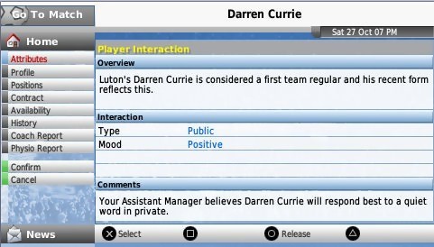 Pas forcément sexy, ces nouvelles images de Football Manager Portable 2008 ont au moins le mérite de faire honneur à la ligue anglaise.