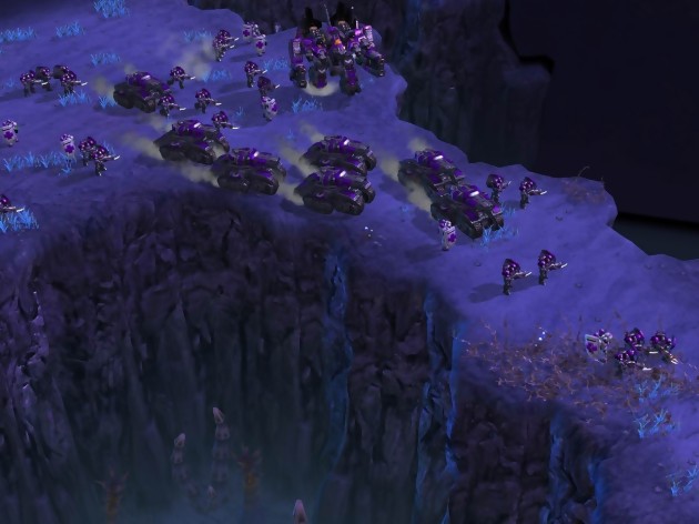 A l’heure où le RTS sur PC s’embourgeoise en exigeant des configurations extrêmes (Supreme Commander pour ne citer que lui) pour fonctionner convenablement, Blizzard Entertainment préfère rester raisonnable, afin que son jeu puisse être accessible à tous. Un choix hautement appréciable, même si certaines concessions et sacrifices sont forcément à faire. Oubliez les zooms incroyables de Supreme Commander ou les milliers d’unités à envoyer au casse-pipe juste en faisant un clic, StarCraft II préfère jouer la carte de l’efficacité que celle de la surenchère. Cela ne signifie à aucun moment que StarCraft II est un jeu déjà obsolète techniquement parlant, loin de là ! Grâce à l’utilisation d’un moteur 3D flambant neuf, le jeu affiche des graphismes d’une classe certaine. Certes, le nombre de polygones n’est pas aussi élevé que dans les dernières productions du genre, mais le patte artistique réussie permet au jeu de briller et de pouvoir se mesurer aux mastodontes du genre.