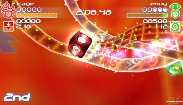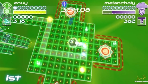 Mélange entre Mercury et Kula World, Geon Emotions (anciennement Geono) est un nouveau titre développé exclusivement pour le Xbox Live Arcade et le PC par Strawdog Studios. C’est Eidos Interactive qui s’occupera de sa mise ne ligne mais pour l’heure l’éditeur vient d’ouvrir le site officiel de ce jeu de réflexion haut en couleur. Geon Emotions propose à quatre joueurs de s’affronter afin de récupérer leur propre E-Motes, l’énergie du monde Geon, et le premier arriver à 5 remporte la partie. Un principe simple mais qui se corsera en fonction des niveaux à l’architecture de plus en plus sinueuse et tordue. En solitaire, vous aurez affaire avec des duels contre l’ordinateur ou au mode Time Attack utile pour débloquer plusieurs mini-jeux.