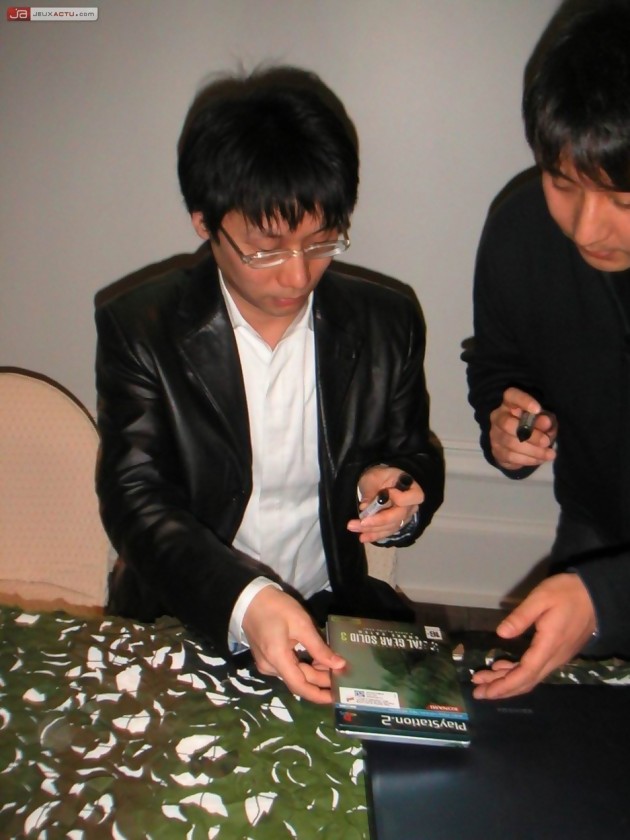 Quoi de mieux qu'un petit tour d'Europe pour présenter dignement Metal Gear Solid 3 : Snake Eater à la presse et fêter comme il se doit la sortie européenne du jeu signé Konami ? Au lendemain de la conférence qui s'est tenue à Berlin (à laquelle nous étions conviés) et malgré les nombreux vols annulés, Hideo Kojima s'est quand même donné la peine de venir faire un petit tour du côté de Paris pour nous parler de son jeu d'infiltration. Au programme, nous avons eu le droit à une petite rétrospective sur la trilogie Metal Gear Solid, quelques précisions sur le scénario et la production de l'épisode 3 mais aussi l'annonce officielle faite par Kojima himself sur le développement de Metal Gear Solid 4, sans oublier l'éternelle séance de dédicaces. Rien de bien neuf par rapport à la conférence européenne donc mais on a appris par exemple que Monsieur Kojima planche actuellement sur un tout nouveau projet autre que Metal Gear Solid puisqu'il a laissé sa place de réalisateur à une tierce personne. Bien entendu, il était accompagné de Ken-ichiro Imaizumi et de Yoji Shinkawa, qui se sont ensuite prêtés à une séance de questions-réponses, grâce à laquelle on a appris qu'une suite à Metal Gear Acid n'était pas exclue sur PSP. Bref, contrairement à ce qu'on pourrait croire, la saga Metal Gear Solid est loin d'avoir dit son dernier mot. On rappelle également qu'une séance de dédicaces ouverte au public est prévue aujourd'hui à 18 heures à la Fnac Saint Lazare. Avis aux amateurs.