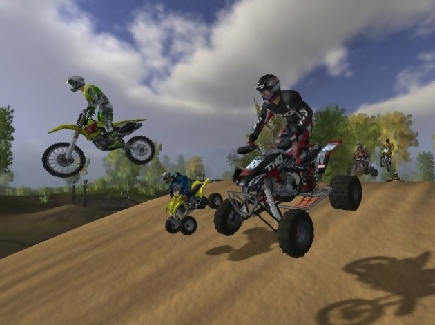Il y a un mois jour pour jour, THQ et Rainbow Studios annonçaient la naissance d’un nouveau projet basé sur deux licences à fort potentiel. MX vs ATV Unleashed, c’est la rencontre de l’univers des jeux de motocross (MX Rider, MX Superfly, MX Unleashed) et la série ATV Offroad. L’éditeur vient de consacrer une page à son nouveau jeu et c’est l’occasion d’y découvrir ces quelques screenshots mais également d’en apprendre un peu plus sur les modes de jeu. Outre la liberté importante des circuits, de nombreux challenges en tous genres viendront agrémenter le soft : SuperMoto, Short Tracks, Hill Climbs, Way Point Races, Monster Mash, Gap Jumps … Avec plus de 6 catégories de véhicules différents (quads, motocross, avion, monster trucks, 4x4 …), les amateurs de sports motorisés seront aux anges. THQ promet également un mode online jouable jusqu’à 8 pour les deux versions prévues, PS2 et Xbox. MX vs ATV Unleashed est annoncé pour le mois de février 2005.