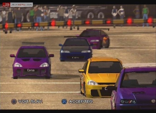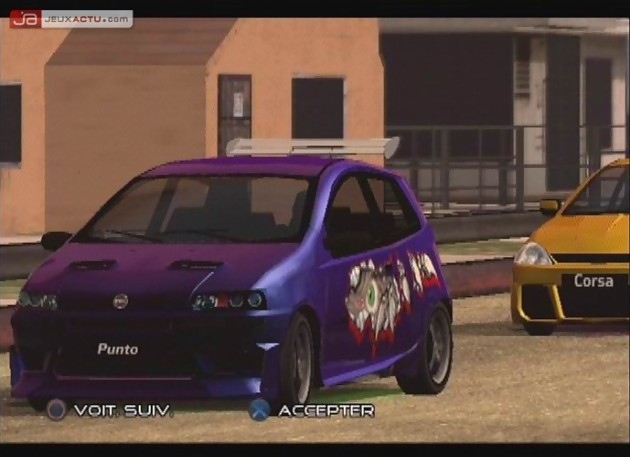 Si la position de Juiced parmi les jeux de courses semble assez floue, il est une chose sur laquelle on peut être sûr, c’est sa réalisation technique. Du premier coup de volant au franchissement de la ligne d’arrivée, il faudrait vraiment se la jouer fine bouche pour nier la beauté du jeu. Qu’on soit sur PC, Xbox ou PS2, la qualité visuelle de Juiced éblouit à chaque virage. Certes, les circuits manquent singulièrement de charme et les routes bien industrielles sont loin d’être aussi excitantes que les routes ensoleillées de Burnout ou les villes lumineuses de NFSU. Néanmoins, chaque parcelle de route fourmille de détails et il est assez plaisant finalement de rouler parmi ses building gris et sans âme aucune. Dommage en revanche que la bande-son propose des thèmes franchement anodins et loin du rock californien de Burnout ou des grosses vibes de NFSU. D’un point de vue sonore, ce n’est pas Juiced qui va vous donner envie d’augmenter le volume. Même chose pour les replays. D’habitude assez réussi dans les jeux de grosses cylindrées, celui de Juiced est loin, très loin de ce qui se fait en la matière. D’un point de vue contenu, Juiced n’a pas à rougir face à la concurrence. Le jeu affiche pas moins de 53 voitures modélisées avec soin en reprenant des marques connues telles que Fiat, Volkswagen, Honda, Peugeot ou Opel, pour ne citer qu’elles. Malgré leur présence, une gestion des dégâts est intégrée et il sera possible de faire plier la tôle de ces cylindrées. Heureusement, entre chaque course, il sera possible de passer au garage pour réparer les pièces endommagées. Mais pour les acheter, il faudra bien évidemment avoir des sousous dans la popoche. Pour ce faire, il faudra relever des défis et en sortir vainqueur pour glaner de l’argent ici et là et gagner en respect. Indispensable pour évoluer au sein de la ville.