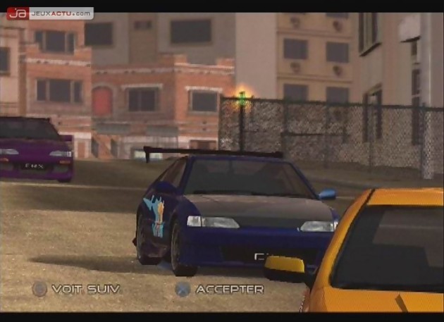 Soyons honnêtes, lorsque l’on évoque le nom de Juiced, n’importe quel joueur normalement aware de l’actualité vidéoludique pense irrémédiablement à un jeu de courses orienté arcade et qui pompe allégrement ses inspirations du côté de Burnout, Need For Speed : Underground et autres Midnight Club. C’est en tout cas la politique prise par Acclaim et Juice Games à l’époque et confirmée par l’un des producteurs que l’on a pu rencontrer à Warrington. Ce dernier nous a d’ailleurs confié qu’il classait Juiced dans la catégorie des Need For Speed : Underground et Midnight Club avec en plus un moteur physique réaliste. Jusque-là tout va bien. Il faudra en fait attraper une manette et quelques tours de piste pour se rendre compte qu’en matière de gameplay, Juiced n’a pratiquement rien à voir avec les deux jeux sus-cités. Et ce sentiment d’avoir affaire à un tout autre jeu pouvait se lire sur le visage de la plupart des journalistes présents. Amusez-vous à adopter une conduite arcade façon NFSU ou Midnight Club et vous finirez la tête dans le volant au premier virage venu. Dans Juiced, il va falloir se la jouer plus finaud. Les changements de direction nécessitent systématiquement d’avoir le pied sur le frein car au moindre contact avec un mur quelconque et votre compteur de vitesse se retrouvera au plus bas. Bien entendu, le frein à main peut permettre d’appréhender un virage plus aisément mais là encore, votre bolide n’aura pas la même attitude que ceux de NFSU par exemple. Certains journalistes se sont même amusés à comparer la conduite de Juiced à celle de Project Gotham Racing. Nous n’irons pas jusque-là mais il paraît clairement maladroit de classer Juiced dans la catégorie des jeux purement arcade. Le jeu est donc un mixe entre simulation et arcade avec tout de même un penchant du côté de la simu. Un peu embêtant pour un jeu ayant pour fond de commerce l’aspect arcade du produit.
