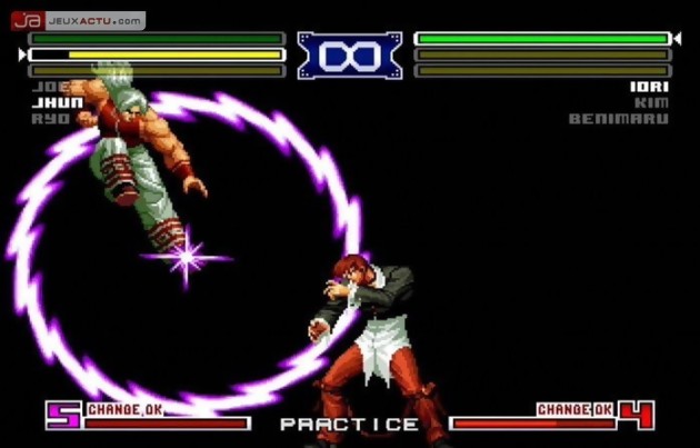 Il se sera écoulé presque deux ans entre la sortie sur Neo Geo de KOF 2003 et son adaptation sur PS2 en France. Une attente longue mais néanmoins ponctuée de plusieurs épisodes de KOF depuis que SNK Playmore a décidé de convertir ses hits sur les autres supports du marché. Si le résultat n'est pas toujours probant, force est de constater que certains efforts ont été faits depuis le début et ça sera un véritable plaisir que de rejouer à The King of Fighters 2003 dans sa version PAL. En attendant, voici des screenshots maison de la version preview PS2 qui tourne à la rédac' depuis plusieurs semaines. La sortie de The King of Fighters 2003 est fixée au 28 janvier 2006 sur Xbox et PS2.