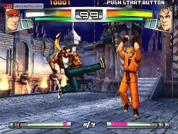 Premier jeu bénéficiant des capacités de la carte AtomisWave de Sammy, The King of Fighters NeoWave est enfin arrivé à la rédaction dans son boîtier PS2, tout frais tout pimpant. Sorti l'été dernier dans les salles d'arcade au Japon, le dernier épisode en date de la fabuleuse série inventée par SNK est un Dream Battle. Pas d'histoire à proprement parler mais juste un mixe des meilleurs persos de la série, façon KOF '98. Le gameplay de KOF NeoWave s'éloigne en effet du Tag Battle de KOF 2003 en proposant néanmoins quelques nouveautés appréciables. Car avant de choisir son ou ses combattants, il faudra au préalable choisir son type de technique : Super Cancel, Guard Break ou bien Max 2. Chaque technique permet d'appréhender les matches d'un certaine manière et devrait s'adapter à tout type de joueur. On reviendra plus longuement sur le nouveau système de fight lors du test import, mais en attendant, cette news n'a pour but que de vous faire partager nos 77 screenshots maison.