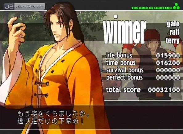 En vente libre depuis 24 heures au Japon, The King of Fighters XI est arrivé à la rédaction dans son tout beau packaging PS2 accompagné d'une coupure de journal relayant les principales actualités des titres SNK Playmore. Il s'agit donc du onzième épisode de la série et le second à avoir été développé sur AtomisWave. Il succède bien évidemment à The King of Fighters 2003 (disponible depuis quelques semaines en Europe) en reprenant les principaux personnages et le gameplay de ce dernier. SNK Playmore poursuit donc sa percée du tag battle, déjà appréciable et approfondit encore plus le système de jeu avec l'arrivée de Super Cancel et autres ajustements techniques. Côté casting, pas moins de 33 personnages (11 équipes de trois) prennent le départ avec pour but de démasquer celui qui se cache derrière l'organisateur du tournoi. D'autres personnages (des guest-stars pour la plupart) viendront étoffer la liste des belligérants déjà bien conséquente. Hayate, Gai, Silver et bien d'autres encore seront accessibles en terminant le jeu à 100%, sans oublier les persos exclusifs à la version PS2, notamment Geese Howard et Mai Shiranui. En attendant de vous rédiger notre test import, voici quelques images maison (111 au total) pour prendre l'ambiance de ce KOF XI qui s'annonce sous les meilleurs auspices.