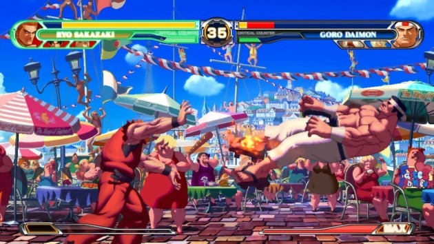 SNK Playmore prévoit quelques nouveautés pour les versions consoles de The King of Fighters XII. La première concerne le filtre anti-aliasing qu'il sera possible d'activer en allant faire un tour dans les Options du jeu. Comme on peut le voir sur ces nouvelles images et ces quatre autres également, les personnages arborent un côté lisse, ce qui permet de nettoyer les contours pixellisés qu'on pouvait apervoir dans la version Arcade. Une option qu'on trouvait déjà dans les rééditions des anciens KOF parus sur PS2. Mais que les puristes se rassurent, il sera bien possible de garder la netteté d'origine et profiter entièrement de l'affichage HD. La sortie de The King of Fighters XII est prévue le mois prochain dans les salles d'arcade et en juillet sur PS3 et X360.