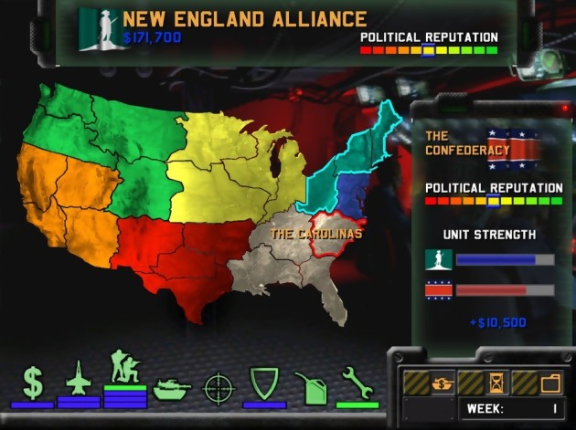 2K Games se réveille soudainement après nous avoir gratifier de deux nouvelles images de Shattered Union. C’est ainsi que l’éditeur nous présente plusieurs nouvelles images des combats mais également des menus où vous devrez gérer vos finances et vos troupes. Avec ses missions non-linéraires, ses 7 factions différentes (Greater California, Arcadia, New Republic of Texas, Heartlan, Dixieland, Yankee Union et European Expeditionary Force), ses modes multijoueurs online ou offline et son moteur 3D détaillant le moindre bâtiment, Shattered Union pourrait bien rafler le cœur des amateurs de RTS sur Xbox et PC le 21 octobre prochain.