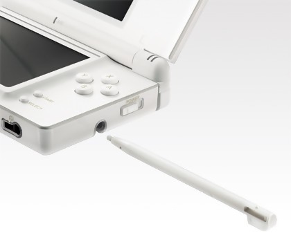 A l'image de sa grande soeur, la future DS Lite sera disponible sous plusieurs coloris. Si le modèle Crystal White sera la couleur par défaut (bien plus classe que le gris métal bien fade de la première DS), on pourra également retrouver la machine sous deux teintes de bleu différent : Ice Blue et Enamel Navy, commercialisée également le 2 mars prochain au prix de 16 800 yens, soit à peu près 118 €. Nintendo en profite également pour nous montrer le nouvel emplacement du stylet, désormais accessible sur le côté droit de la machine. En plus d'un nouveau câble d'alimentation plus petit et de la dragonne, le pack proposera également une réplique de cartouche GBA pour faire office de protection. Pas bête.
