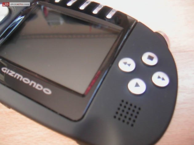 Si le design de la console ne fait clairement pas l’unanimité (les boutons de tranche L et R sont vraiment laids), on ne peut pas en revanche lui reprocher sa robustesse et sa petite taille qui lui permet ainsi de se faufiler sans souci dans les poches de n’importe quel manteau. Plus petite que la DS et la PSP mais plus large et épaisse que la N-Gage de Nokia, la Gizmondo étonne aussi par sa prise en main plutôt agréable. Le revêtement en plastique poli est également idéal pour les joueurs qui ont tendance à avoir les mains suintantes. La console possède 11 touches en tout et pour tout et six d’entre elles sont consacrées au jeu et à la navigation dans les menus, tandis que les cinq autres placées au-dessus de la machine, permettent d’accéder aux réglages (de droite à gauche : menu, son, luminosité, bouton d’alerte et power). Malgré sa petite taille, l’écran TFT affiche une résolution de 320x240 pixels et arrive à étonner par sa qualité qui se rapproche davantage de celle d'une PSP que d’une DS. Il suffit simplement de lancer une vidéo (dans une résolution convenable toutefois) ou de jouer aux premiers jeux disponibles pour en apprécier la qualité visuelle. L’autre atout majeur de la Gizmondo réside dans son processeur basé sur la technologie Nvidia. Cadencé à 400 Mhz, il permet en théorie de faire tourner des jeux en 3D tels qu’on peut les voir sur les consoles de salon. Pour le moment, les quelques softs disponibles depuis la sortie de la console en Angleterre ne nous a pas permis d’apprécier cette bête de course, mais le jeu Colors (un GTA-like jouable via GPS) semble assez prometteur. Un catalogue de 89 jeux devrait d’ailleurs être disponible dans l’année 2005 et certains éditeurs tels que Sega (qui adaptera des vieux titres tels que les Sonic en 2D), Ubisoft (Rayman est prévu) et SCi s’intéressent de près à la Gizmondo. Des pourparlers avec Electronic Arts sont en cours, avec pour commencer une adaptation de SSX 3. Mais pour faire tourner ces jeux qu’on annonce grandioses pour une console portable, il va falloir faire quelques concessions, à commencer par l’autonomie de la machine. Il faudra compter environ 4 heures d'autonomie pour une utilisation dédiée à la musique, caméra, GPS et autres messages. La Gizmondo montrera ses limites dès lors qu’il faudra faire tourner une vidéo (clips, films etc.) ou un jeu puisqu’on nous annonce une autonomie de 3 heures seulement ! Insuffisant pour espérer faire de l’ombre à la concurrence.