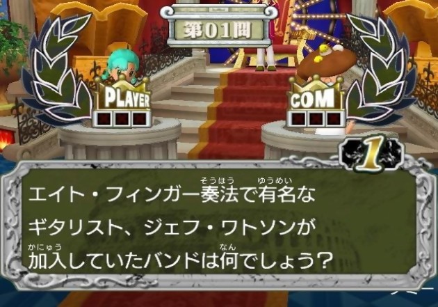 L'arrivée de Densetsu no Quiz ô Ketteisen (connus aussi sous le nom de The Legend of The Quiz Tournament of Champions) le 8 décembre prochain au Japon est l'occasion rêvée pour les amateurs de mini-jeux de sortir le micro (fourni avec Mario Party 6 pour ceux qui auraient manqué le coche) du placard. Encore faut-il que les joueurs concernés soient à l'aise avec la langue des samouraïs car les questions de Densetsu no Quiz ô Ketteisen sont totalement en japonais, oralement comme à l'écrit. N'étant nullement prévu en Occident, mieux vaut être bilingue (et ses amis par la même occasion) pour profiter pleinement du jeu. Pour les autres, il y a ces quelques images.
