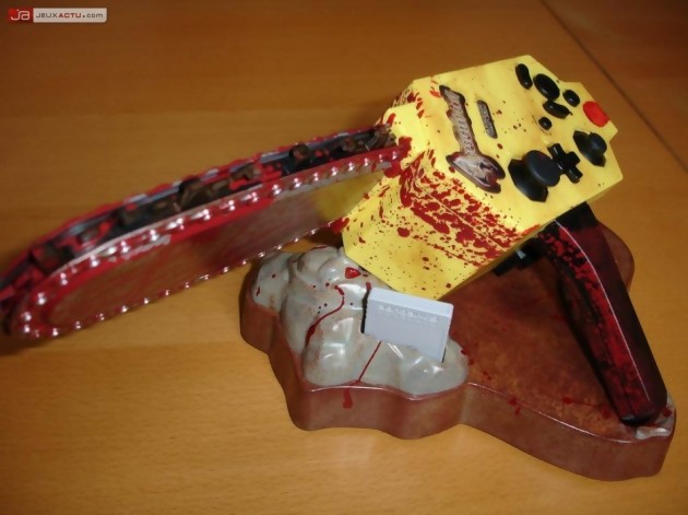 Sorti au Japon en début d'année puis en Angleterre il y a quelques mois grâce au distributeur anglais Wild Things, la manette tronçonneuse (de son vrai nom Chainsaw controller) de Resident Evil 4 sur GameCube va finalement être commercialisée en France. Une nouvelle que les fans et autres collectionneurs sauront apprécier à sa juste valeur. C'est MaDrics qui distribuera l'accessoire, qui sera vendu au prix de 59,99 € et ce, à partir du 5 juillet 2005. Notez que vous pouvez toujours vous rendre sur cette page pour lire ou relire notre avis (par notre regretté Ludovic Bechtold) sur cette manette hors du commun.