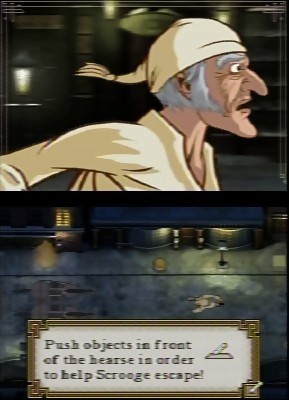 Parce qu'il est censé arriver dans moins d'un mois chez nous, Le Drôle de Noël de Scrooge revient dans l'actualité par le biais de quelques images. L'occasion pour nous de rappeler aux néophytes qu'il s'agit de l'adaptation sur DS d'un film - inspiré lui-même par le conte de Charles Dickens, Un Chant de Noël - dans lequel on retrouvera diverses énigmes à résoudre au stylet et au micro entre quelques cut-scenes animées. 14 mini-jeux devraient également garnir la cartouche, tandis que des chants de Noël, la possibilité de décorer et préparer le repas de Noël dans la cuisine de Tiny Tim,et un mode multijoueur sur une seule et même console complèteront le tableau. Sortie programmée le 5 novembre prochain.