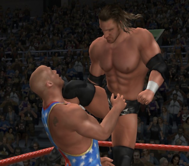 Il n’aura pas fallu attendre longtemps avant de découvrir les premiers screenshots de WWE Smackdown ! VS Raw 2006. Au lendemain de son annonce, THQ lâche des visuels de la nouvelle confrontation Smackdown et Raw. Pour cet opus, il sera possible de contrôler la jauge d’énergie de son catcheur afin de lâcher, au moment opportun, l’ultime attaque qui mettra KO votre adversaire. Appelée « superstar », cette jauge sera également de la partie lors des rixes online. WWE Smackdown ! VS Raw 2006 est attendu sur Playstation 2 en fin d’année.