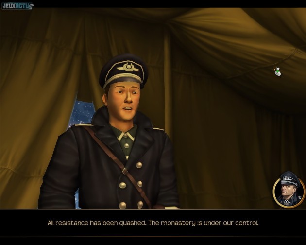 Dans la première heure de jeu, cet assistant d'un nouveau genre nous rappelle par exemple que l'on doit se rendre au Tibet, qu'il faut pour cela retrouver la trace d'un spécialiste de la région, ce qui n'est possible qu'en remettant la main sur une photo de lui, photo qui se trouve dans un coffre-fort dont le code est dans le portefeuille de Fenton, portefeuille qui est actuellement détenu par un jeune garçon, qui acceptera de restituer l'objet à son propriétaire uniquement si on l'aide à capturer une chauve-souris... Vous l'aurez deviné, le jeu ne manque pas d'humour et les énigmes sont souvent farfelues. Elles n'en sont pas insolubles pour autant, quelques allers et retours dans les différents décors et un minimum de réflexion suffisent pour débloquer la plupart des situations. Les déplacements incessants ne sont pas là pour rallonger artificiellement la durée de vie puisqu'un double clic sur une sortie abrège la transition. Et le héros a l'intelligence de se mettre automatiquement à courir lorsqu'on le dirige vers un endroit éloigné. De toutes les manières, c'est toujours un plaisir de parcourir ces décors élégamment dessinés. Les couleurs judicieusement choisies et le trait propre retranscrivent parfaitement l'ambiance des différents lieux. L'aspect sonore n'est pas en reste puisque les dialogues sont intégralement doublés, y compris les phrases du héros que l'on sélectionne lors des discussions en QCM. Uniquement disponibles en VO pour le moment, les voix se montrent justes et les acteurs maîtrisent parfaitement l'accent british. Il n'y a plus qu'à espérer que la localisation en français conserve ces atouts ! On est également en droit d'espérer une certaine coopération entre les deux héros, puisqu'une séquence de ce type était présente dans la version preview que nous avons pu essayer. Dans une telle configuration, un clic sur une icône permet de passer d'un protagoniste à l'autre, et il leur est possible d'échanger des éléments d'inventaire. De quoi enrichir et compliquer un peu la résolution des énigmes. Sur ce, nous vous laissons profiter de nos captures d'écran toutes fraîches et vous donnons rendez-vous en 2010 pour un test qui, on l'espère, confirmera définitivement ces bonnes impressions !