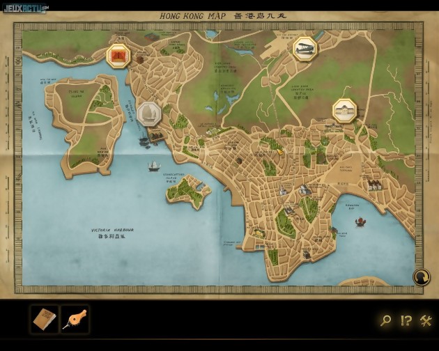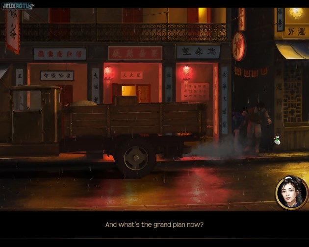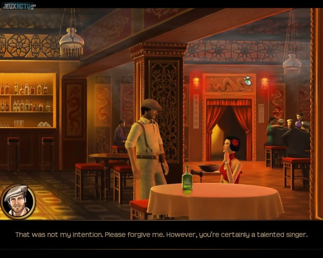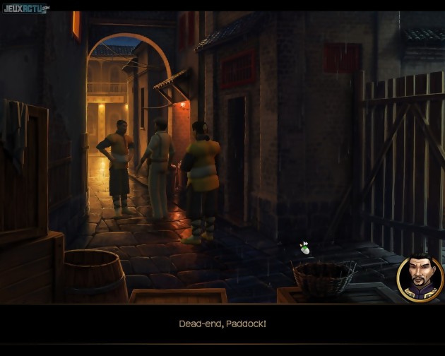 Paddock. Fenton Padddock. Tel est l'étrange nom du héros de Lost Horizon. Cet ancien militaire britannique, devenu contrebandier après une sombre histoire d'insubordination, traîne ses guêtres du côté de Hong Kong. Nous sommes en 1936 et les petites histoires de rivalité avec la mafia locale vont rapidement faire place à des problèmes bien plus importants. Les forces du troisième Reich sont à la recherche d'un mystérieux artefact, que Fenton va également convoiter, pour des raisons évidemment bien plus nobles. Assez convenu pour ce que nous avons pu en voir, mais tout à fait sympathique, le scénario rappelle celui des aventures d'Indiana Jones. En tous points, les développeurs ont d'ailleurs choisi de tabler sur des recettes classiques mais efficaces. Comme George Stobbart des Chevaliers de Baphomet ou Brian Basco de Runaway, le héros est ainsi accompagné d'une charmante jeune femme. L'aspect technique repose sur la classique combinaison de personnages en 3D et de décors fixes. Quant à l'interface, elle ressemble trait pour trait à celle des Secret Files. On retrouve donc la fonction "examiner la scène" qui indique instantanément à l'écran l'emplacement des différentes zones interactives. Une manière efficace d'abréger les pénibles séances de chasse au pixel. Cet outil est secondé par une nouvelle fonction d'aide, intitulée "quêtes". En l'activant, un récapitulatif des objectifs en cours nous est offert. Cela permet notamment de reprendre le fil de l'histoire si on a laissé un peu trop longtemps le jeu de côté. Comme dans tout bon jeu d'aventure, certaines énigmes débouchent en effet sur des cascades d'évènements.