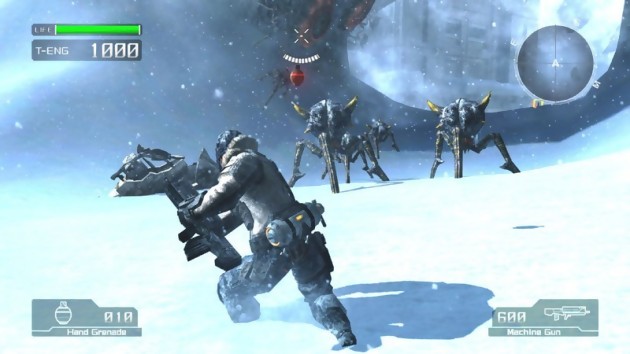 Pour cette nouvelle galerie d’images, Capcom a choisi de s’étendre sur les robots, les créatures et les armes que vous découvrirez dans Lost Planet lors de sa sortie le 12 janvier prochain. Et à propos des armes, sachez que notre héros incarné par le clone graphique de Lee Byung-hun pourra s’équiper des pétoires habituelles accrochées aux Mechas. Ce choix ne sera pas sans risque car notre avatar aura du mal à se mouvoir et lorsque ce sera venu le temps de recharger, il faudra se lever de bonne heure. Mais en contrepartie, la puissance de feu est décuplée ce qui sera forcément utile face aux hordes de bébêtes qui se jetteront sur vous.