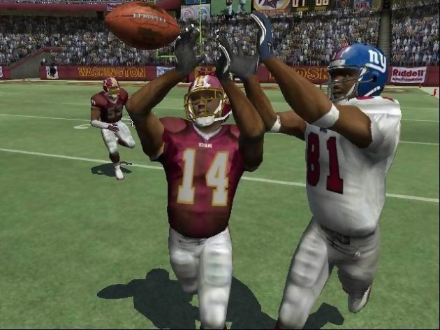 Non, il ne s'agit pas des nouvelles images de Madden prévu sur les consoles next gen' mais de celles provenant des consoles actuelles, à savoir Xbox, GameCube, PS2 mais aussi PC. C'est sûr, c'est tout de suite moins impressionnant, avec des formes beaucoup moins arrondies et l'aliasing en plus. Néanmoins, quelques nouveautés dans le système de jeu devraient pousser les fans du quaterback à se procurer cette nouvelle édition. Un cône de visée fera désormais son apparition pour permettre au joueur d'être plus précis dans ses passes. Madden NFL 2006 est prévu pour l'automne 2005 en Europe.