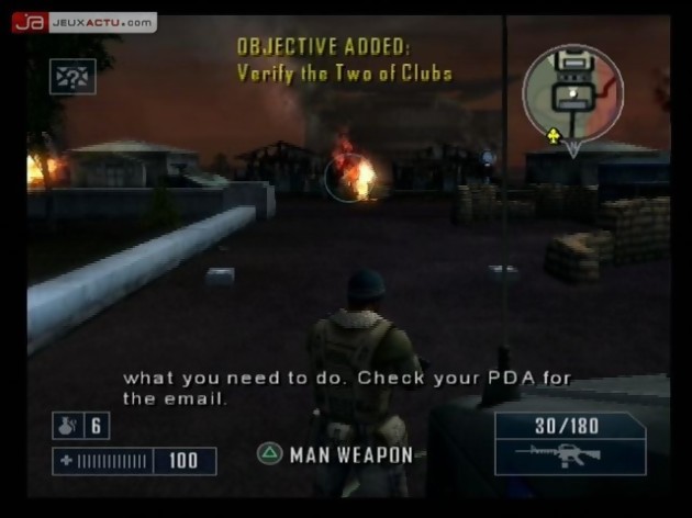 L’action étant au cœur même du jeu, il était important que la réalisation suive. De ce point de vue là, on ne se fait guère de soucis pour Mercenaries car la vue à la troisième personne couplée à une caméra bien réglée et à un système de visée efficace rendent le gameplay redoutable. On est loin des travers d’un Driv3r ou d’un True Crime. Le contenu s’annonçant très sympathique, il était donc important que le contenant le soit tout autant et de ce point de vue également, le jeu ne nous déçoit pas avec une approche spectaculaire particulièrement jouissive. La version PlayStation 2 que nous avons pu essayer est, comme vous pourrez le constater sur les images accompagnant cet article, bien supérieure graphiquement à un certain GTA San Andreas et certains passages sont réellement explosifs, dans toutes les acceptations du terme. Nous vous ferons d’ailleurs découvrir tout cela en vidéo la semaine prochaine. Si la musique fait dans le classique avec une thématique militaire, les explosions et autres crépitements de mitraillettes augurent d’une sonorisation parfaitement maîtrisée.