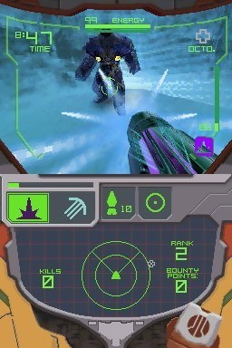 Il faudra donc patienter jusqu'au 5 mai prochain pour voir débarquer Metroid Prime : Hunters en Europe. Reprenant les lignes directrices de la série Metroid Prime sur GameCube, cette version DS sera donc un FPS disposant de quatre configurations différentes pour s'adapter au mieux aux préférences des joueurs. Bien évidemment, le choix gâchette + stylet semble être le plus adapté pour retrouver les sensations du duo clavier-souris. Metroid Prime : Hunters fera également partie des jeux jouables en ligne via le service gratuit de Nintendo avec des modes de jeux classiques et en morph ball.