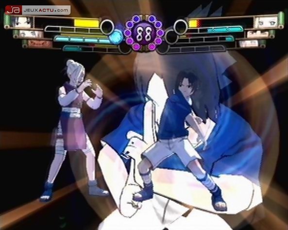 Entre les jeux Xbox 360, ceux qui continuent d'affluer sur les consoles actuelles et les titres en import qu'on se doit de traiter, nous avons de quoi nous constituer une muraille entière de jeux. Sorti il y a deux jours au Japon et fraîchement débarqué à la Rédaction, Naruto Gekito Ninja Taisen! 4 a tout de suite été le centre d'intérêt de notre matinée. Si l'on se réfère au verso de la jaquette, pas moins de 30 personnages sont disponibles dans le nouveau jeu de baston signé 8ing et Tomy. Rassurez-vous, d'autres personnages supplémentaires à débloquer viendront augmenter le casting déjà fort imposant. Parmi ceux-là, 7 sont totalement inédits puisqu'on retrouve Jiroubou, Tayuya, Kidoumaru, Sakon et son frère jumeau Ukon (comptant pour un seul personnage) mais aussi Hoshigake Kisame, Kabuto Yakushi et le charismatique Kimimaro. En fonction du mode de jeu sélectionné, il est désormais possible de changer de personnage en plein combat en appuyant sur le bouton Z, augmentant considérablement la cadence des matchs. En attendant de vous proposer notre test import, voici 79 screenshots réalisés par nos soins.